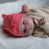 Czapeczka uszyta jest jest z delikatnej bawełnianej dzianiny z małym dodatkiem elastanu. Przeznaczona jest dla dziecka od 0 do 2 lat.