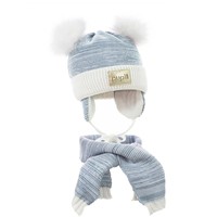 Dziana zimowa czapka zarówno dla chłopca jak i dziewczynki z naturalnym pomponem.