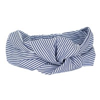 Opaska dla dziewczynki w drobne paseczki granatowo białe. Wiązana z przodu w ozdobny węzeł a z tyłu regulowana gumką. Pięknie będzie wyglądała w niej również mama.